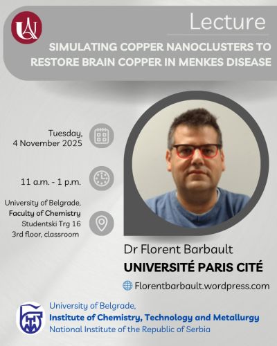 Институт за хемију, технологију и металургију Универзитета у Београду има задовољство да најави научно предавање које ће одржати проф. Флорент Барбо, Градски универзитет у Паризу (Université Paris Cité).