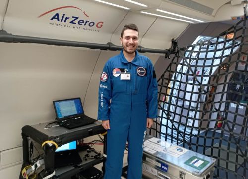 Doktoranti Teodora Vićentić i Stefan Ilić učestvovali su u pripremi i realizaciji eksperimenta za parabolični let Evropske svemirske agencije (ESA). Kao vrhunac njihovog truda i saradnje sa grupom našeg prijatelja Carlo Iorio-a iz Brisela, prošle nedelje su imali prilike da upravljaju eksperimentom u bestežinskom stanju na posebnom letu ZEROG koji je organizovan u saradnji sa Novespace agencijom u blizini Bordoa. Po našim saznanjima, ovo je prva grupа iz naše zemlje koja je učestvovala u ovakvim eksperimentima.