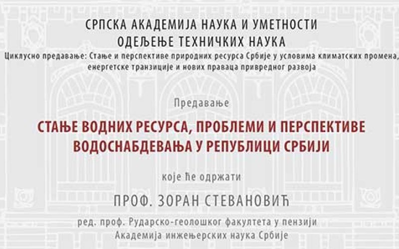 Predavanje „Stanje vodenih resursa, problemi i perspektive vodosnabdevanja u Republici Srbiji“